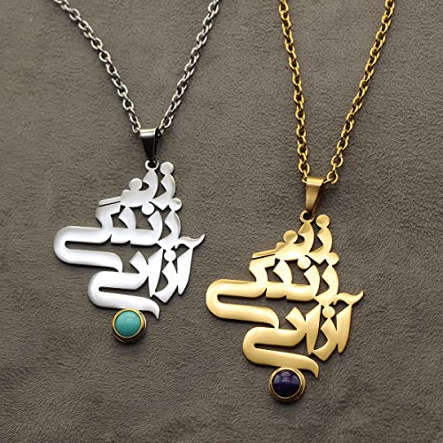 Voici le prix pour acheter Collier avec pendentif en forme de liberté de vie pour femme iranienne Farsi (plaqué or 18 carats, perle)