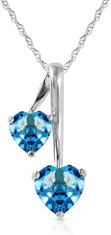 Galaxy Gold Collier cœurs en or blanc massif 14 carats avec topaze bleue naturelle de 1,4 carat