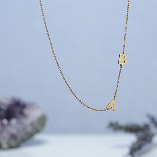 Voici le prix pour acheter Collier de lettres en or personnalisé pour femmes, bijoux de l’alphabet latéral en or massif 14 carats, accessoire élégant pour un usage quotidien, cadeau d’anniversaire parfait pour les filles