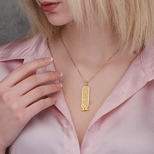 Voici le prix pour acheter Collier de nom personnalisé cartouche double face, or 14 carats double face personnalisé fait à la main, bijoux pendentif égyptiens femmes, collier de nom hiéroglyphe Egypte par HStudio