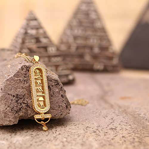 Voici le prix pour acheter Collier de nom personnalisé Cartouche, or 14 carats personnalisé fait à la main, bijoux pendentif égyptiens femmes, collier de nom hiéroglyphe Egypte par HStudio