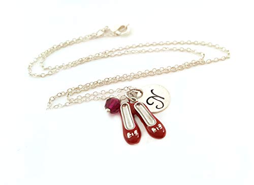 Le Prix Collier de pantoufles rubis – Charme du Magicien d’Oz – Bijoux personnalisés en argent sterling initial personnalisé