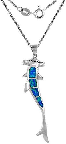 Voici le prix pour acheter Collier de requin marteau en opale synthétique en argent sterling en bleu et rose avec accents de zircone cubique, chaîne en corde de 2 pouces