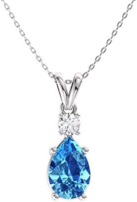 Voici le prix pour acheter Diamondere Collier avec pendentif en forme de poire et pierre précieuse naturelle et certifiée en forme de poire avec diamant en or massif 14 carats | Pendentif 0,43 carat avec chaîne