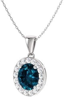 Voici le prix pour acheter Diamondere Collier avec pierres précieuses ovales naturelles et certifiées et petit diamant en or massif 14 carats | Pendentif 0,51 carat avec chaîne