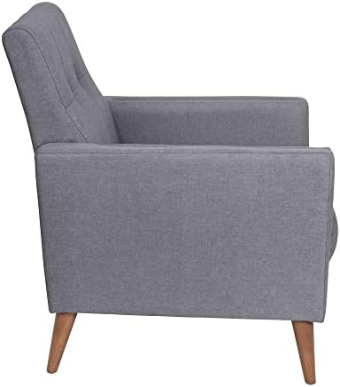 Le Prix Flash Furniture Conrad Commercial Chaise moderne du milieu du siècle – Revêtement en faux lin gris ardoise – Touffetage sans boutons – Pieds en bois