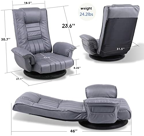 Avis sur FLOGUOR Chaise de jeu pivotante au sol, canapé de sol pliable réglable à 6 positions avec accoudoirs, support du dossier pour adultes, chaise longue d’intérieur en tissu cuir, canapé paresseux japonais 6066CO