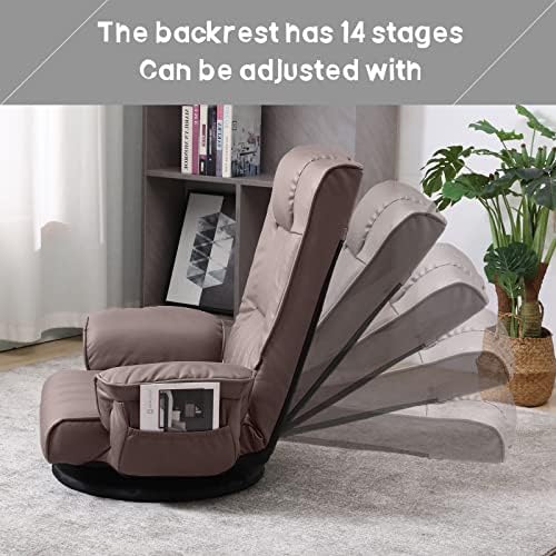 Le Prix FLOGUOR Chaise de jeu pivotante au sol, canapé de sol pliable réglable à 6 positions avec accoudoirs, support du dossier pour adultes, chaise longue d’intérieur en tissu cuir, canapé paresseux japonais 6066CO
