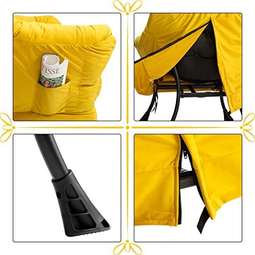 Fiche Technique HollyHOME Chaise paresseuse moderne en tissu velours, chaise longue contemporaine, canapé de loisirs à cadre en acier unique avec accoudoirs et poche latérale, dossier épais rembourré, jaune