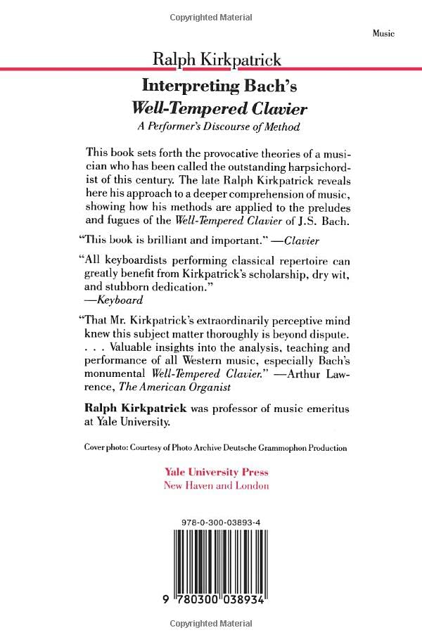 « Que l’esprit extraordinairement perspicace de M. Kirkpatrick connaisse parfaitement le sujet est incontestable. . . Des informations précieuses sur l’analyse, l’enseignement et l’interprétation de toute la musique occidentale, en particulier le monumental Clavier bien tempéré de Bach. »—Arthur Lawrence, The American Organist