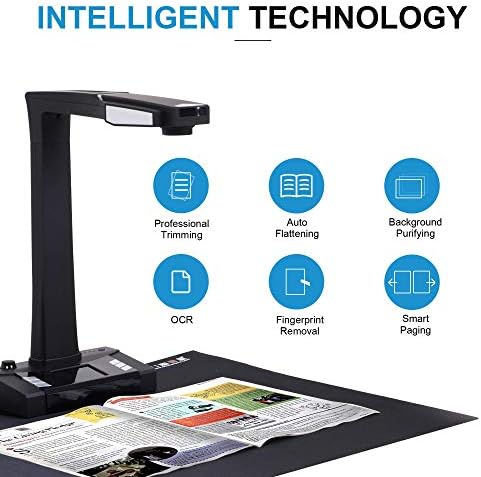 Fiche Technique JOYUSING Scanner de documents professionnel 18 MP, technologie d’aplatissement et de redressement automatique, capture A3, OCR multilingue, conversion en PDF/Word/Tiff/Excel, conversion en PDF/Word/Txt/Excel sous Windows et PDF sur système Mac