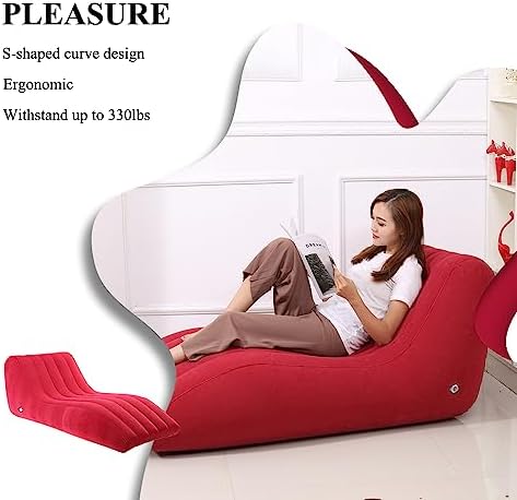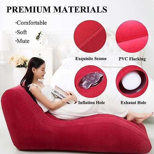 Le Prix KAERMU Chaise longue gonflable de salon d’intérieur, chaise longue gonflable pliable avec pompe à air, chaise longue de voyage, camping, pique-nique, plage (rouge)