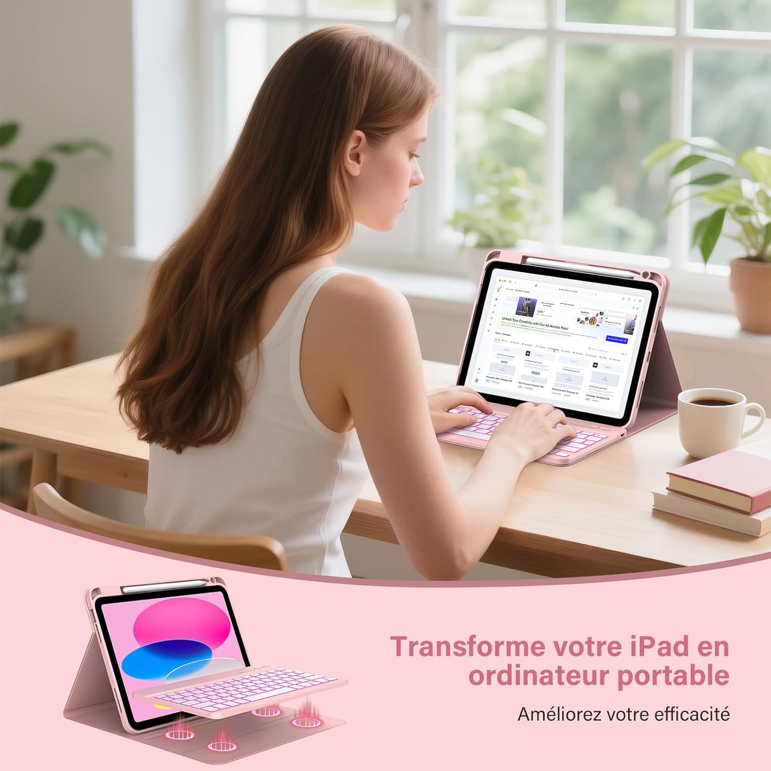 Fiche Technique KBCASE Keyboard Case for iPad A16 11/10 Generation (11 Inch 2025/10.9 Inches 2022) Bluetooth Keyboard Case for iPad 10th/11th Generation with 7 Backlit Colours, Pencil Holder, French AZERTY, Pink au Maroc