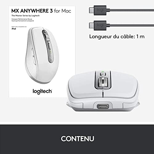 Avis sur Logitech MX Anywhere 3 for Mac – Sans fil, défilement ultra-rapide, toutes surfaces, 4K PPP, boutons personnalisables, USB-C, Bluetooth, compatible MacBook Pro, MacBook Air, iMac, iPad