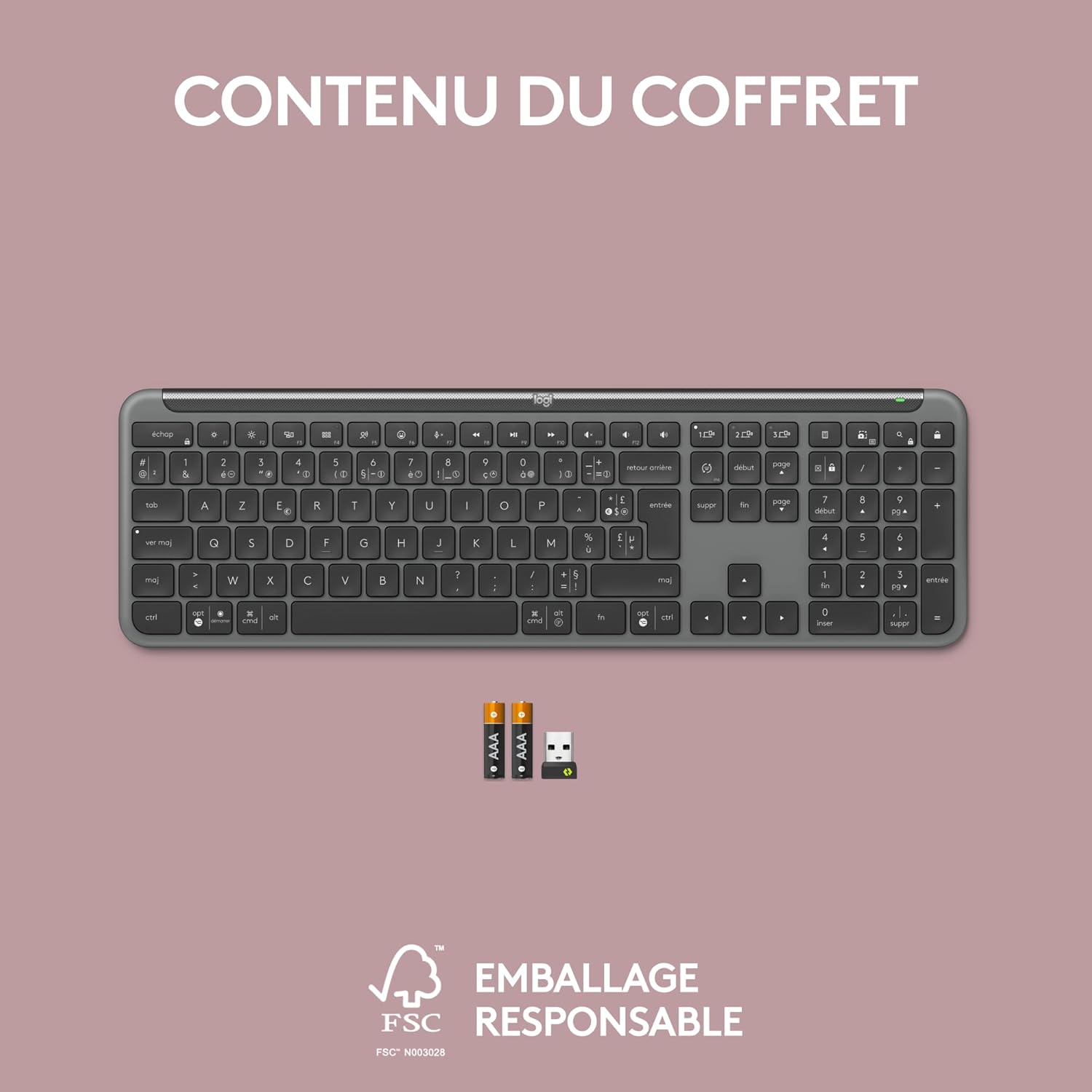 Le Prix Logitech Signature Slim K950, clavier sansfil, design élégant, saisie sur plusieurs dispositifs, frappe discrète, Bluetooth, multi-systèmes d’exploitation, Windows, Mac, Chrome, FRA AZERTY, Graphite au Maroc