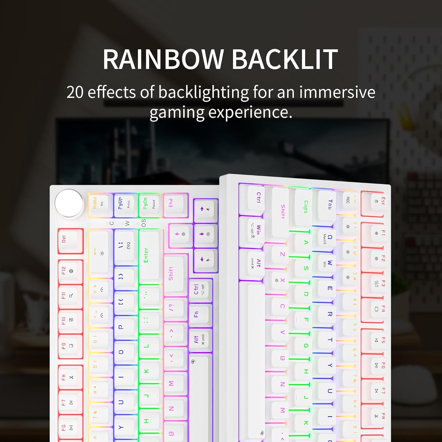 75% Clavier Mecanique Gamer: Les 82 touches clavier mini gamer adoption de 75% qwerty disposition, qui économise 25% de l’espace et rend le bureau plus concis, donne la souris beaucoup d’espace pour se déplacer. L’extérieur et les touche couleurs de ce clavier compact sont de couleur blanche, ce qui rend le design minimaliste parfait pour le bureau, le travail, le jouer, la maison et les voyages.