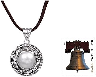 Les acheteurs qui ont testé NOVICA Collier avec pendentif en perles de culture d’eau douce Mabe fait à la main en argent sterling 925 avec cordon en cuir et pierre de naissance blanche d’Indonésie « Orbe blanc »