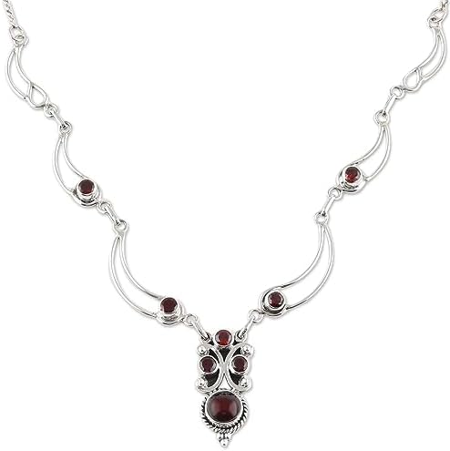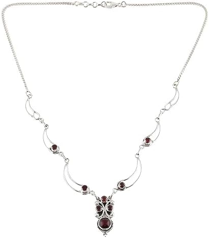 Voici le prix pour acheter NOVICA Collier pendentif grenat fait à la main, maillon naturel d’Inde, pierre de naissance en argent sterling 925, pierre de naissance « Radiant Princess »