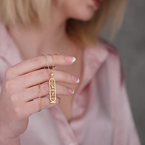 Avis sur Pendentif cartouche personnalisé en or massif 8 carats, collier de nom hiéroglyphe égyptien pour pièce de déclaration personnelle, cadeau de Noël parfait