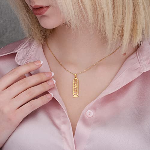 Le Prix Pendentif cartouche personnalisé en or massif 8 carats, collier de nom hiéroglyphe égyptien pour pièce de déclaration personnelle, cadeau de Noël parfait