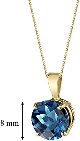 Voici le prix pour acheter Pendentif topaze bleue Peora London en or jaune 14 carats, véritable solitaire de pierres précieuses, forme ronde, 8 mm, 2,50 carats au total