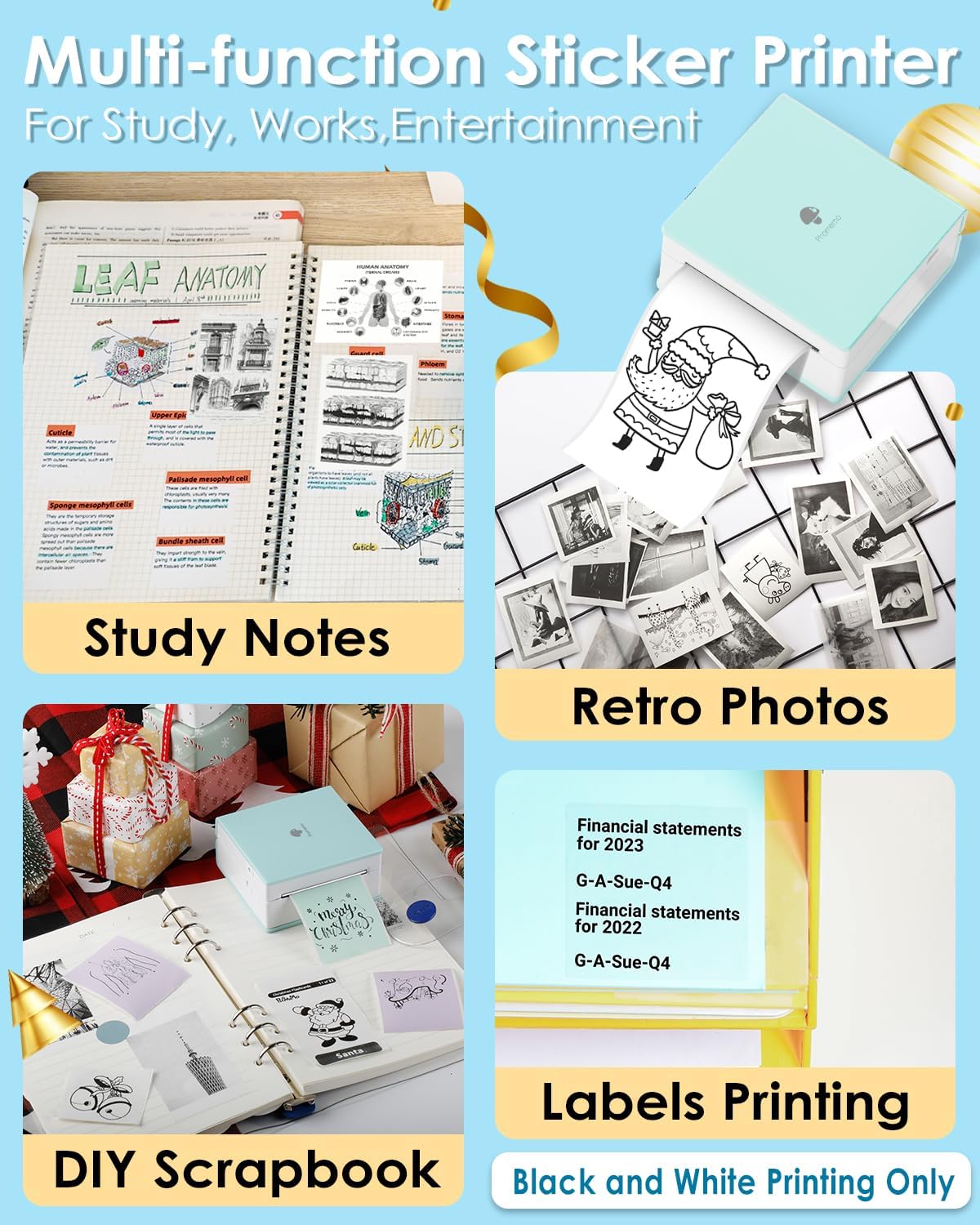 Versatile wireless printer: portable smartphone printer is the best choice for study, work schedule, sticker customization, to-do list, gifts