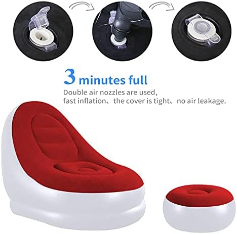 Voici le prix pour acheter PLKO Chaise gonflable avec pompe à air domestique, chaise longue gonflable pour salon intérieur, chambre à coucher, salle de lecture, bureau, balcon, voyage en plein air, camping, pique-nique, néo (rouge et blanc)