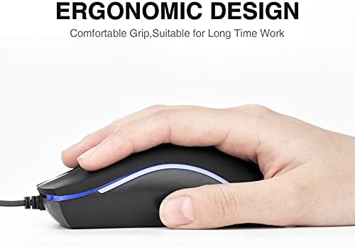 [Ergonomic Design with 4 Buttons]Cette souris d’ordinateur USB est conçue de manière ergonomique, adaptée à vos mains, sans fatigue après un travail et des études à long terme. 【Facile à utiliser]Cette souris filaire simple, il suffit de brancher et de jouer, très facile à utiliser, ne vous inquiétez pas de la connexion comme sans fil, élimine le problème du remplacement des piles, ce qui peut vous faire gagner du temps et améliorer votre efficacité de travail.