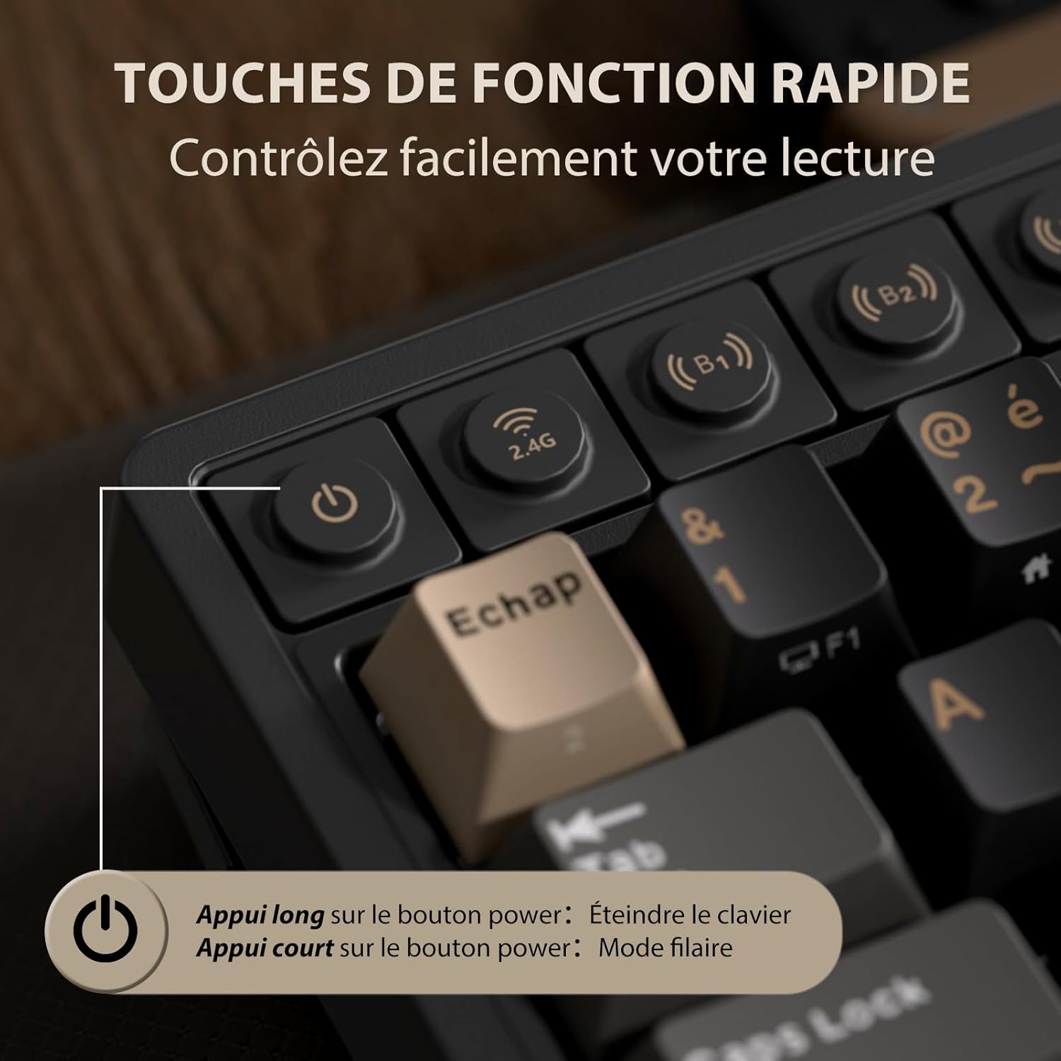 【Tri-Mode Connectivity】 Discover a wireless mechanical keyboard that easily switches between 2.4 GHz, Bluetooth and USB wired modes. Free yourself from bulky cables and connection delays – the optimal solution for responsive gaming and intensive multitasking