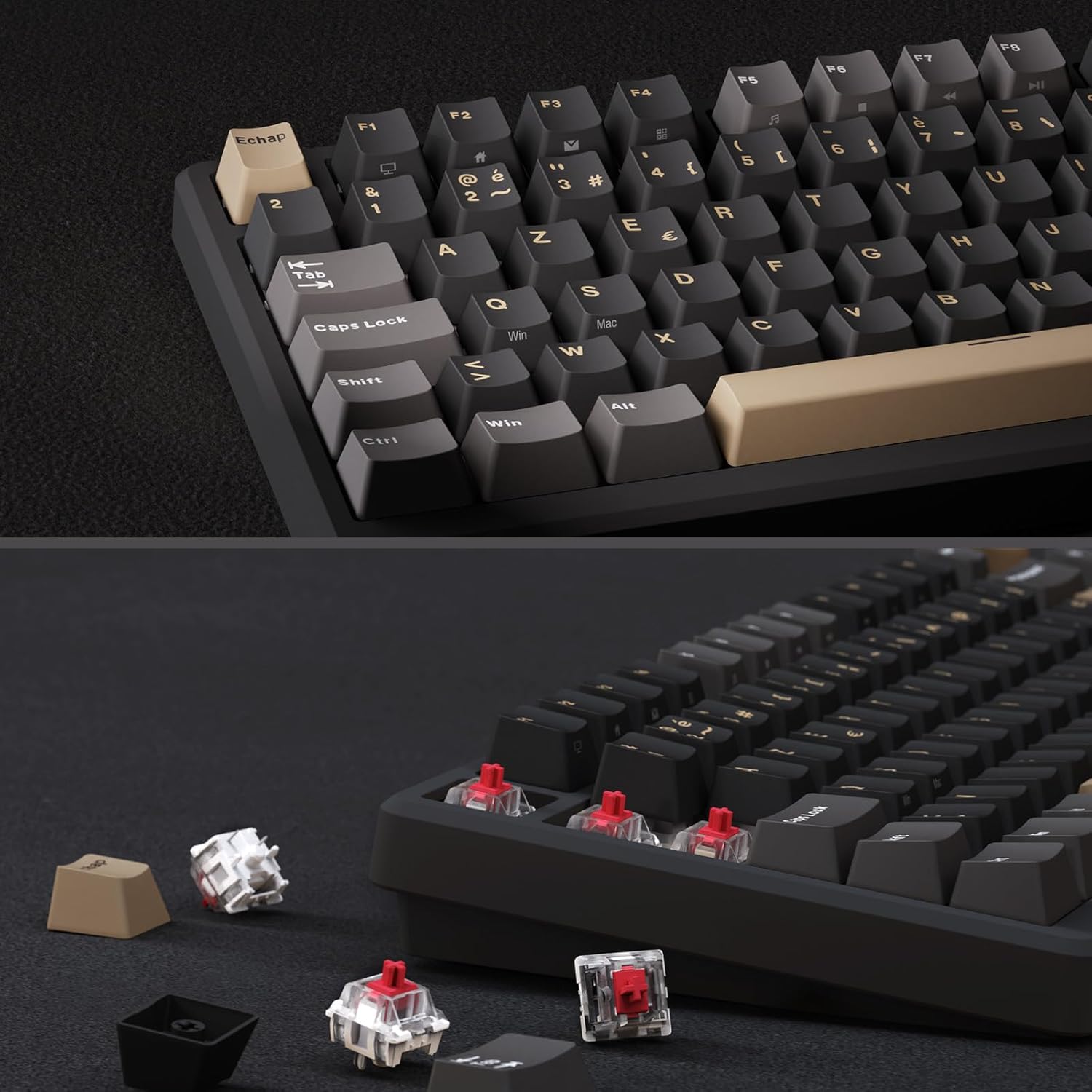 【Clavier Mécanique Compact】 Contrairement aux claviers de taille standard encombrants, ce clavier de jeu à 75 % TKL avec 81 touches offre une disposition qui vous permet d’avoir plus d’espace sur votre bureau pour déplacer la souris ou placer d’autres appareils. Il est facilement transportable et peut être utilisé à la fois pour la saisie au bureau et les jeux à domicile. Sa conception ergonomique garantit un confort optimal lors des longues sessions de frappe et de jeu.