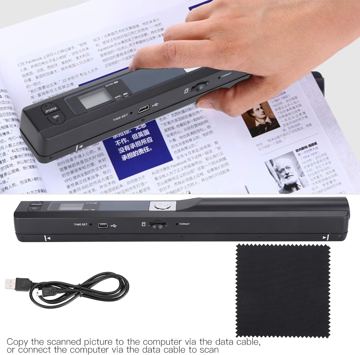Petit et portable, peut facilement mettre dans votre portefeuille ou votre mallette, vous pouvez numériser des documents et des photos importants à tout moment, n’importe où.