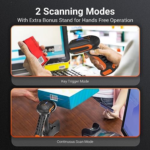 Fiche Technique Scanner de codes-barres Tera Pro 2D : tout nouveau lecteur de codes-barres QR 1D 2D industriel résistant aux chutes, 2500 mAh, BT et 2.4G sans fil pour Windows Mac Android iOS 8100 Orange