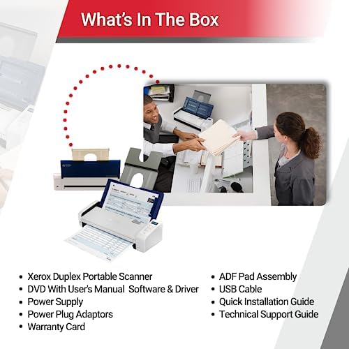 Voici le prix pour acheter Scanner de documents portable recto verso Xerox, Scanner portable recto verso Xerox, bleu et blanc