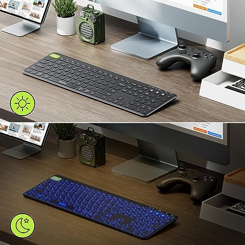 Le Prix seenda Clavier Bluetooth rétroéclairé (USB + Dual BT), clavier rechargeable multi-appareils, clavier Bluetooth sans fil rétroéclairé, compatible pour Windows, ordinateur portable, MacBook Pro/Air, iPad, tablette – Noir