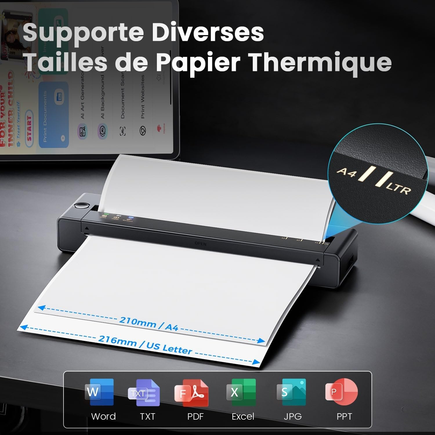 Voici le prix pour acheter TATTMUSE A4 Thermal Printer, Portable Printer Weighing Only 585g, Accurate 300 DPI & Long Life Battery 1500mAh, Portable Thermal Suitable for Mobile Work au Maroc