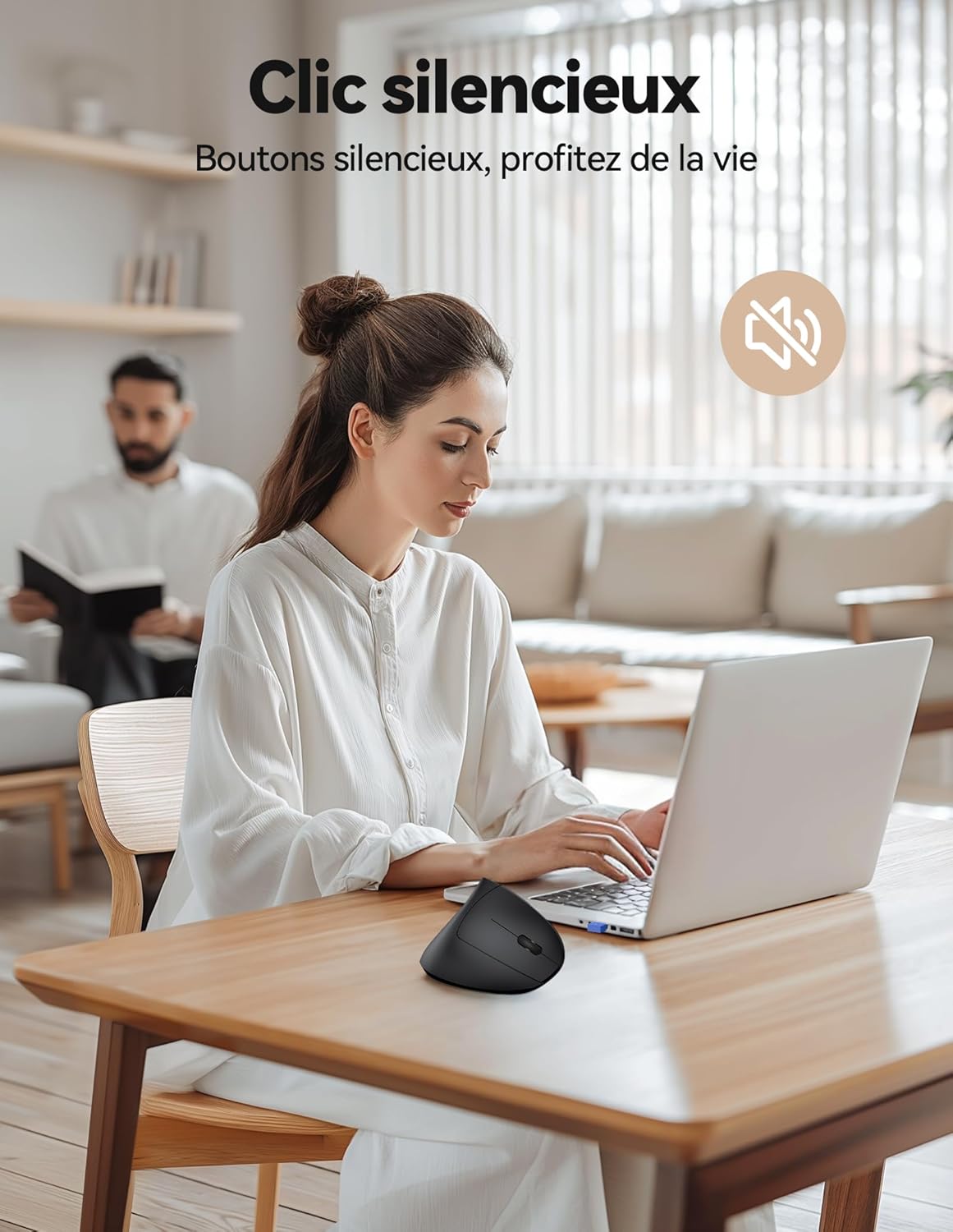 Silent Mouse: Cette souris sans fil silencieuse fonctionne à moins de 23 décibels, pratiquement sans bruit au-delà de 50 cm. Elle est idéale pour les bureaux, les chambres à coucher, les bibliothèques et les vidéoconférences. En utilisant la souris silencieuse, vous pouvez améliorer votre efficacité au travail en silence. Vous ne serez plus dérangé par le bruit et votre environnement de travail sera plus silencieux. Profitez du calme et de la tranquillité et optimisez votre expérience de travail dès aujourd’hui.