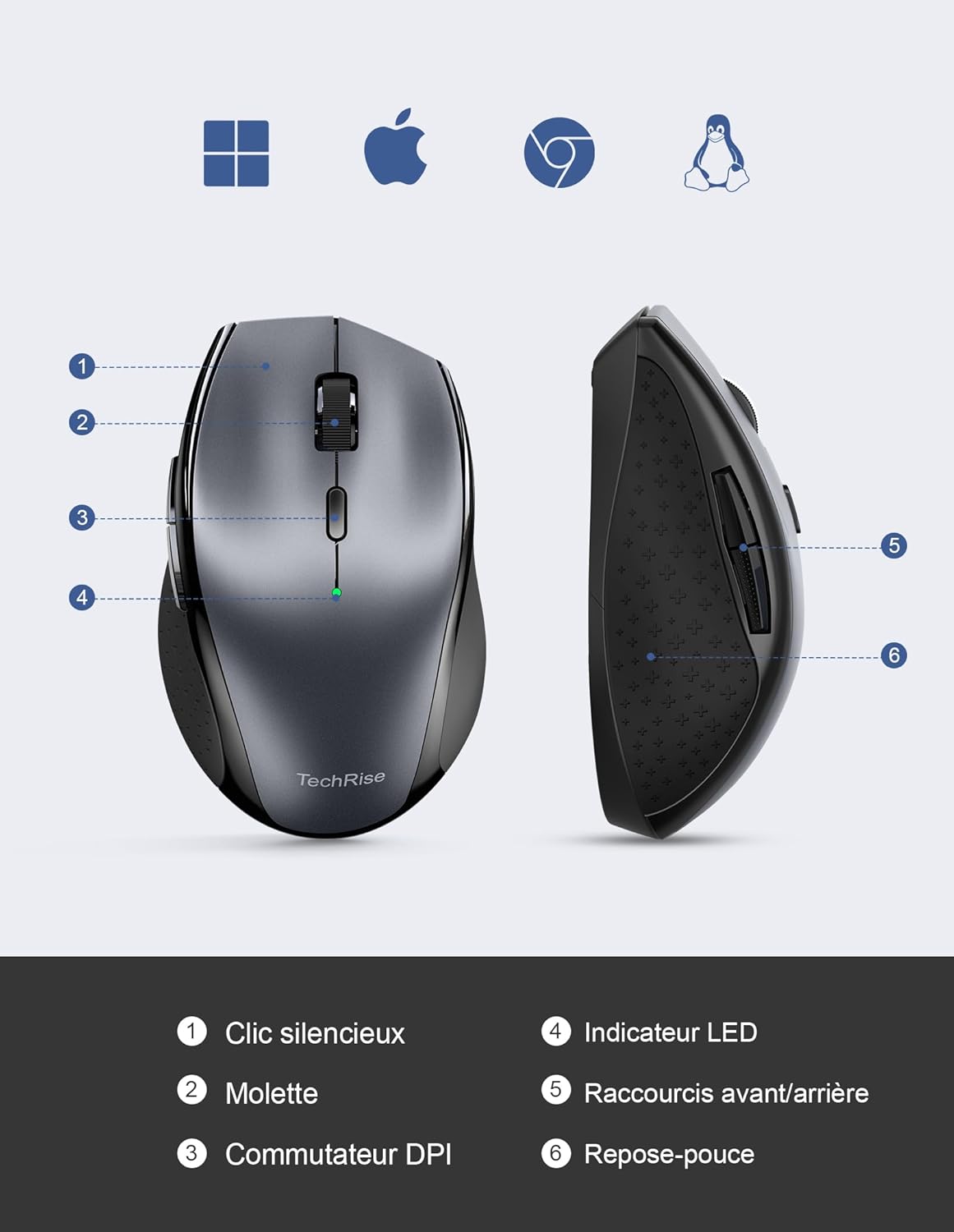 【Durée de vie de 8 millions de clics】La souris sans fil TechRise est assez durable pour résister à 8 millions de clics. Cette souris pour ordinateur portable est compatible avec Windows 11/10/8/7, Windows XP, Vista7/8, macOS, Linux et plus encore.