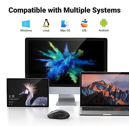 Large compatibilité : compatible avec Windows 7/8.1/10/11/XP, macOS, Linux, Chrome OS et Android ; Fonctionne avec un ordinateur portable, un ordinateur, un PC, un MacBook, un Chromebook, une tablette, un ordinateur portable et plus encore (REMARQUE : nécessite une connexion USB, le récepteur USB est stocké à l’arrière de la souris sans fil)