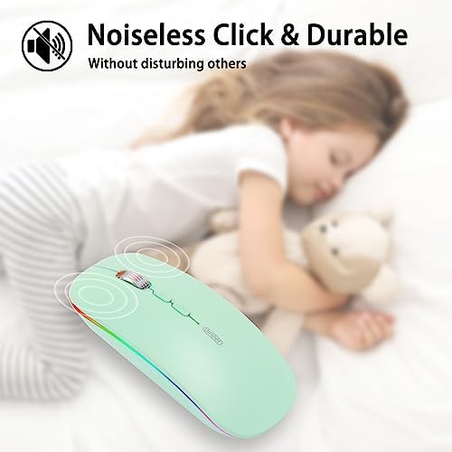 Le Prix Uineer Souris sans fil Bluetooth, souris Bluetooth LED rechargeable (BT 5.1 + 2,4 G), souris d’ordinateur silencieuse pour ordinateur portable, MacBook, Windows, Mac OS, vert