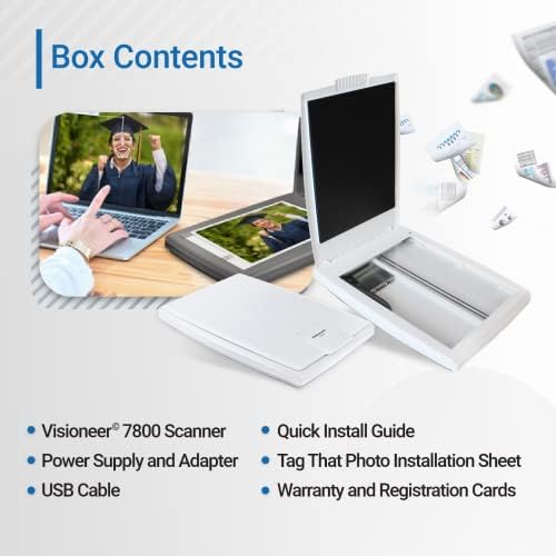 Voici le prix pour acheter Visioneer 7800 Scanner de photos et de documents couleur à plat pour PC avec logiciel Tag That Photo, alimenté par USB