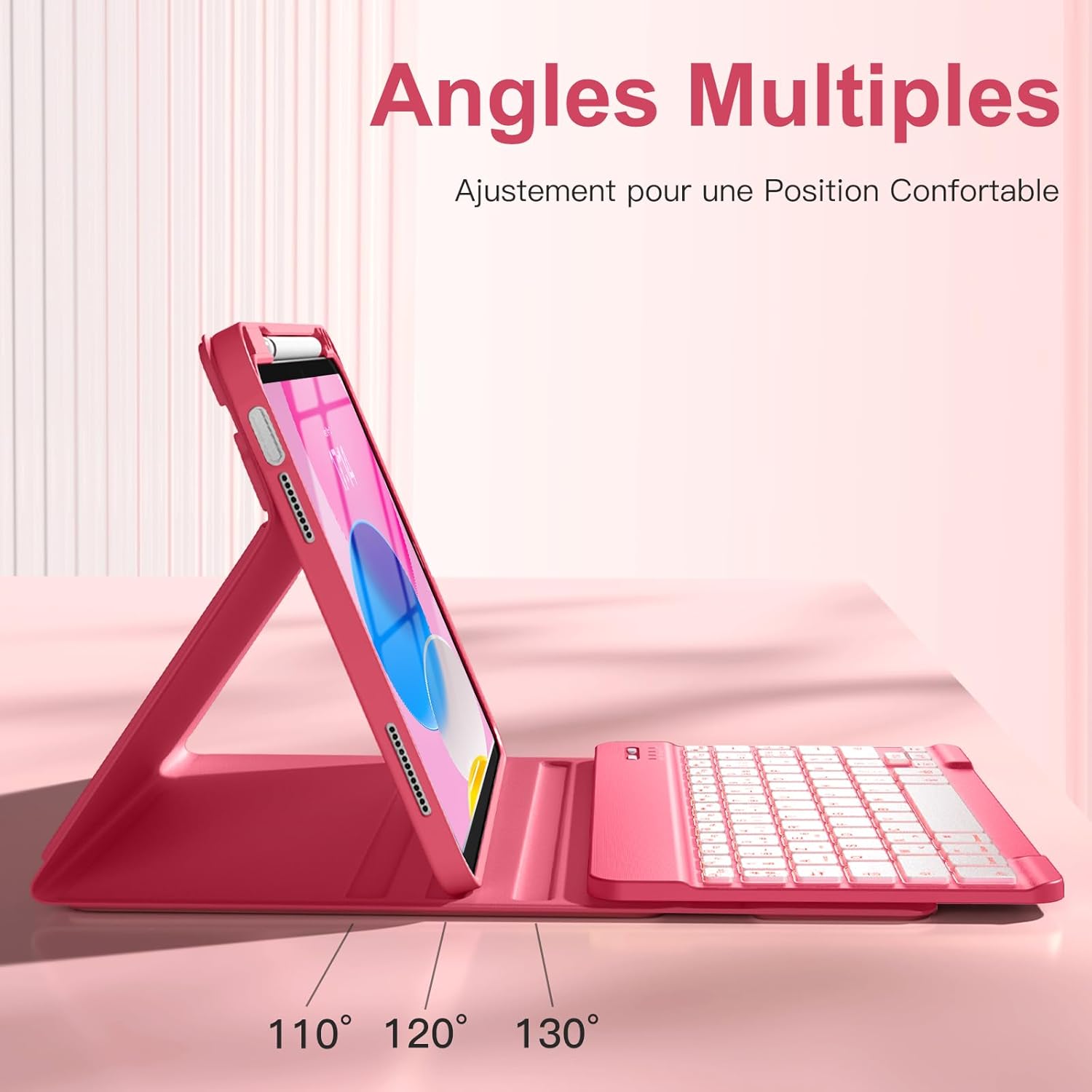 Voici le prix pour acheter Vobafe Keyboard Case for iPad A16 11/10 Generation (11 Inch 2025/10.9 Inch 2022), 7 Colors Backlit Keyboard Case with Pencil Holder, AZERTY Layout for iPad 10th/11th, Pink au Maroc