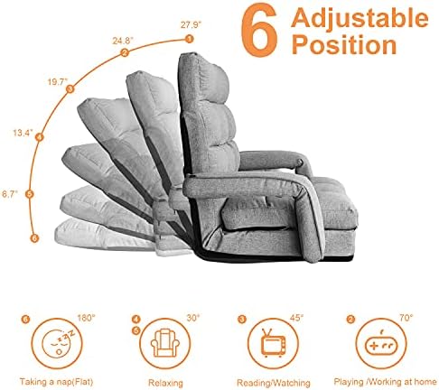 Voici le prix pour acheter WAYTRIM Canapé-lit d’intérieur, canapé paresseux pliable, chaise de sol, pliable à 6 positions, rembourré, lit chaise longue avec accoudoirs et une chaise longue avec oreiller et une chaise longue avec oreiller – Gris