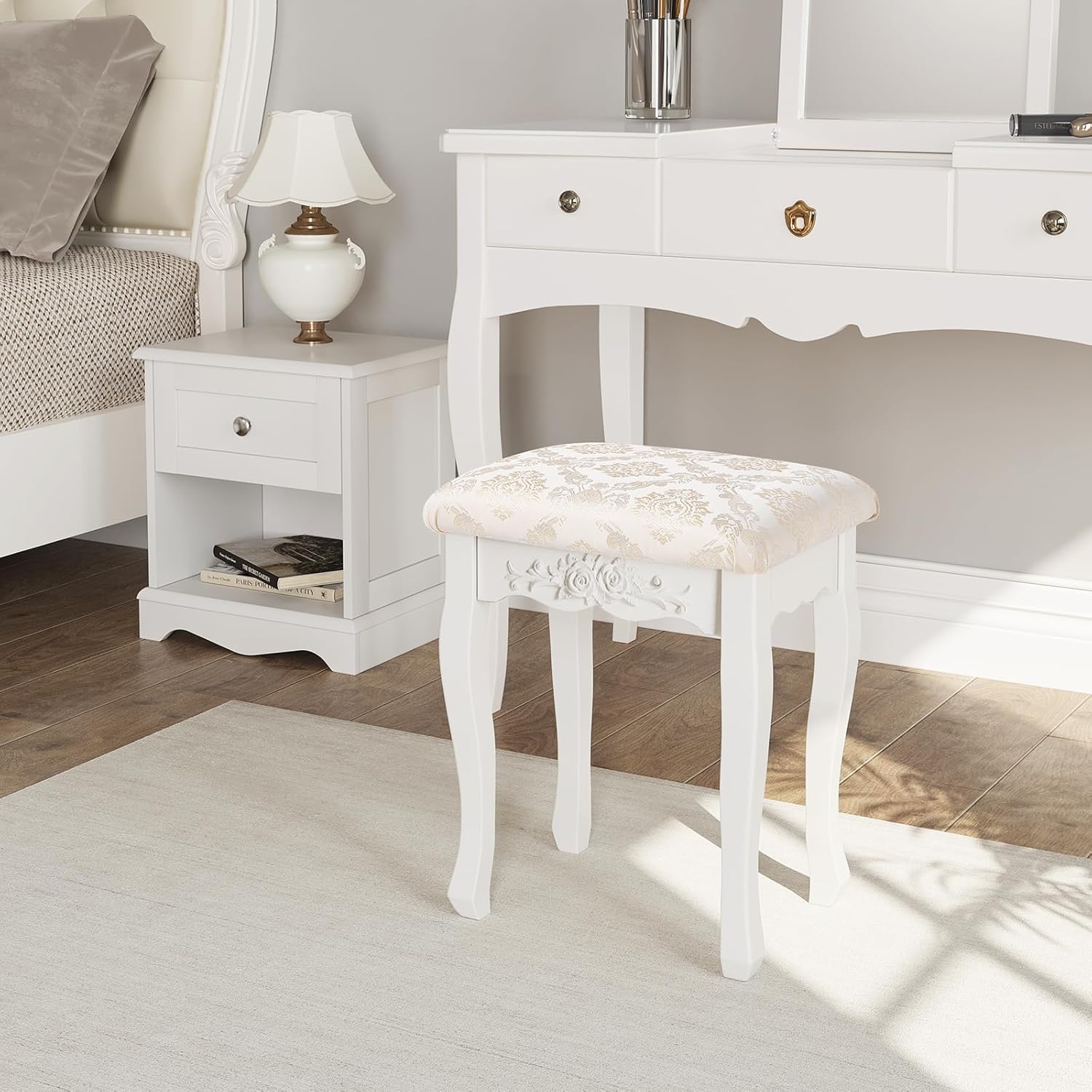 Avis sur WOLTU MB6011 Tabouret pour Coiffeuse Style Baroque, Tabouret de Maquillage Rembourré, Tabouret de Piano, Chaise de Coiffeuse pour la Chambre à Coucher, Blanc laqué