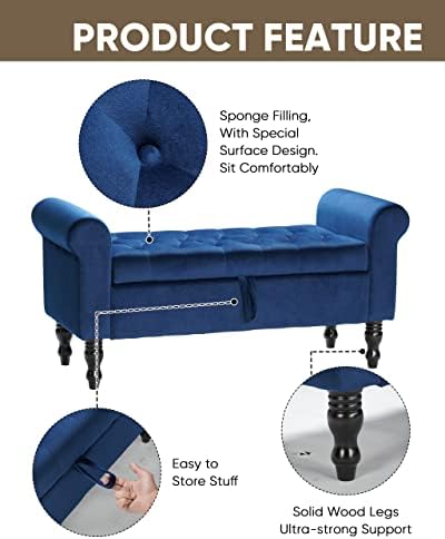Voici le prix pour acheter XSPRACER Banc de rangement pour chambre à coucher, banc ottoman de rangement à bras roulés, bout de lit, ottoman rectangulaire pliable, pour chambre à coucher, bleu