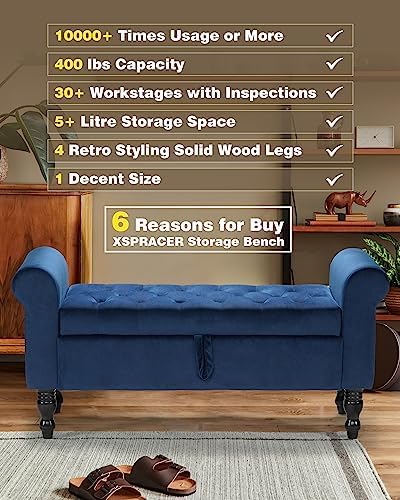 Avis sur XSPRACER Banc de rangement pour chambre à coucher, banc ottoman de rangement à bras roulés, bout de lit, ottoman rectangulaire pliable, pour chambre à coucher, bleu