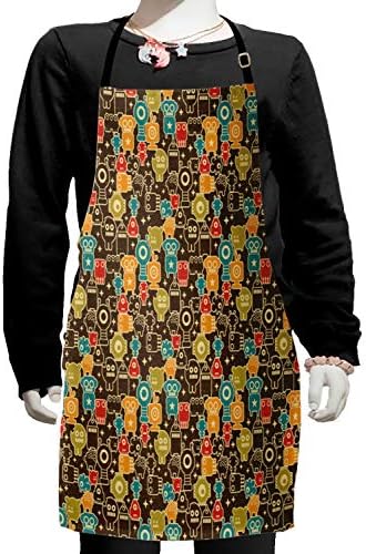 Fiche Technique Ambesonne Tablier Alien, Robot Monstres dans l’Espace Étoiles Style Rétro Fantastique Illustration Futuriste, Petit Tablier Bavoir avec Attaches Réglables pour la Cuisson de la Peinture, Petite Taille, Multicolore