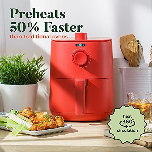 Le Prix BELLA Friteuse à air manuelle 2,9 Qt et multicuiseur 5 en 1 avec plateau et panier amovibles antiadhésifs et lavables au lave-vaisselle, système de chauffage 1400 W, rouge mat