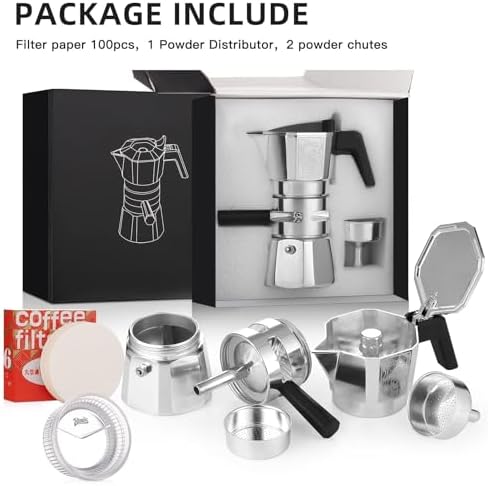 Voici le prix pour acheter Bincoo Machine à expresso sur cuisinière 120 ml/2 tasses, cafetière à double valve avec extracteur de thermostat, cafetière à expresso italienne avec distributeur de poudre et papier filtre pour la maison, argent