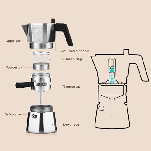 Les acheteurs qui ont testé Bincoo Machine à expresso sur cuisinière 120 ml/2 tasses, cafetière à double valve avec extracteur de thermostat, cafetière à expresso italienne avec distributeur de poudre et papier filtre pour la maison, argent