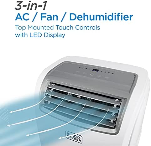 Voici le prix pour acheter BLACK+DECKER Climatiseur portatif 12 500 BTU avec télécommande, blanc